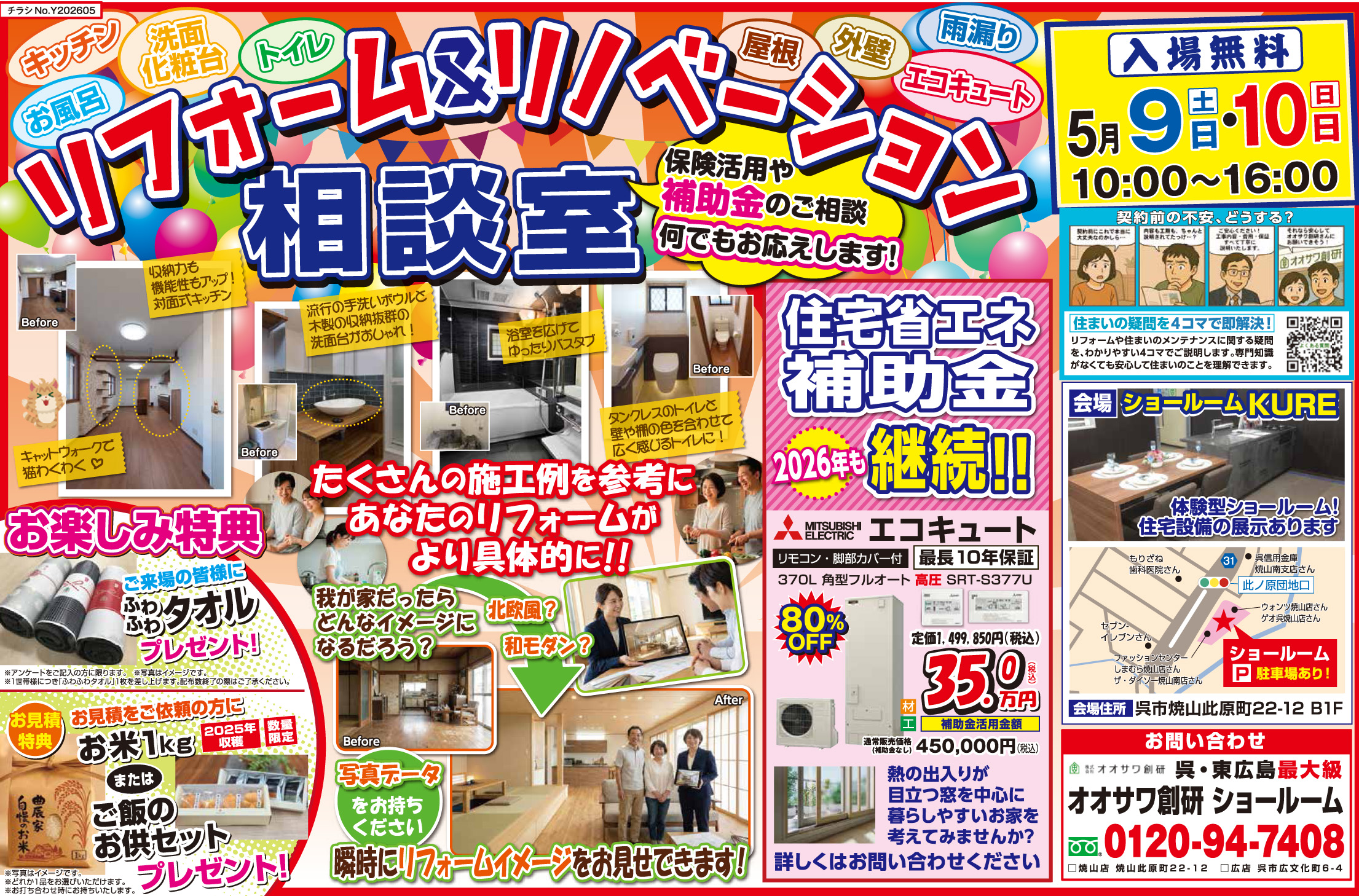 オオサワ創研では、呉市エリアにて毎月1回~2回程度、リフォーム相談会などのイベントを開催しています。