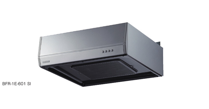 →レンジフード下側が、フラットになっておりスッキリとした形のレンジフードです。レンジフードの底面についている平たな板(整流版)に煙や油を当てて四方の隙間から吸い込む仕組みです。フード型に比べ、フィルターがいらず、整流版を直接拭いたり、オイル受けを時々洗う等、お手入れがしやすく、その他様々な機能が詰まっているのが特徴です。排気方法は、シロッコファンタイプのみ商品が用意されており、機能の違いで数多く商品があります。