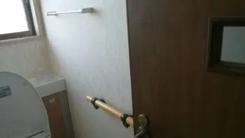 トイレ内を移動するには横手摺をつけると移動が楽になります。