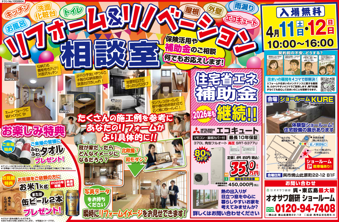 株式会社オオサワ創研では、随時リフォーム&リノベーション相談室inショールームKUREを受け付けております。