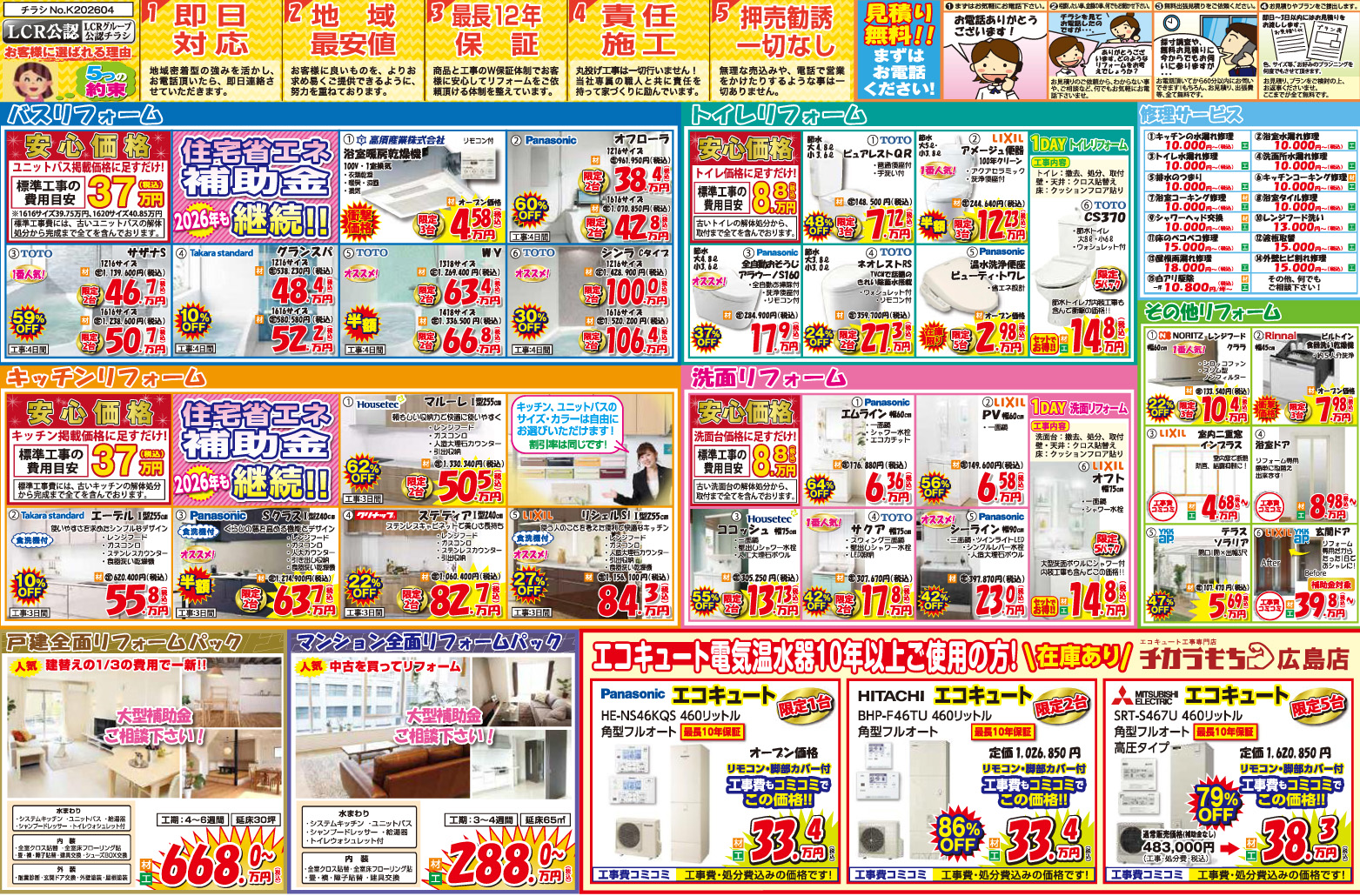 費用の透明化: 水回り(キッチン、浴室、洗面、トイレ)や給湯器・エコキュートの交換、フルリノベーションの「リアルな費用相場」がわかります。