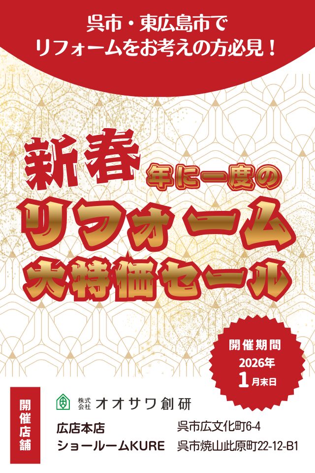 株式会社オオサワ創研では、随時2026新春リフォームセールを受け付けております。