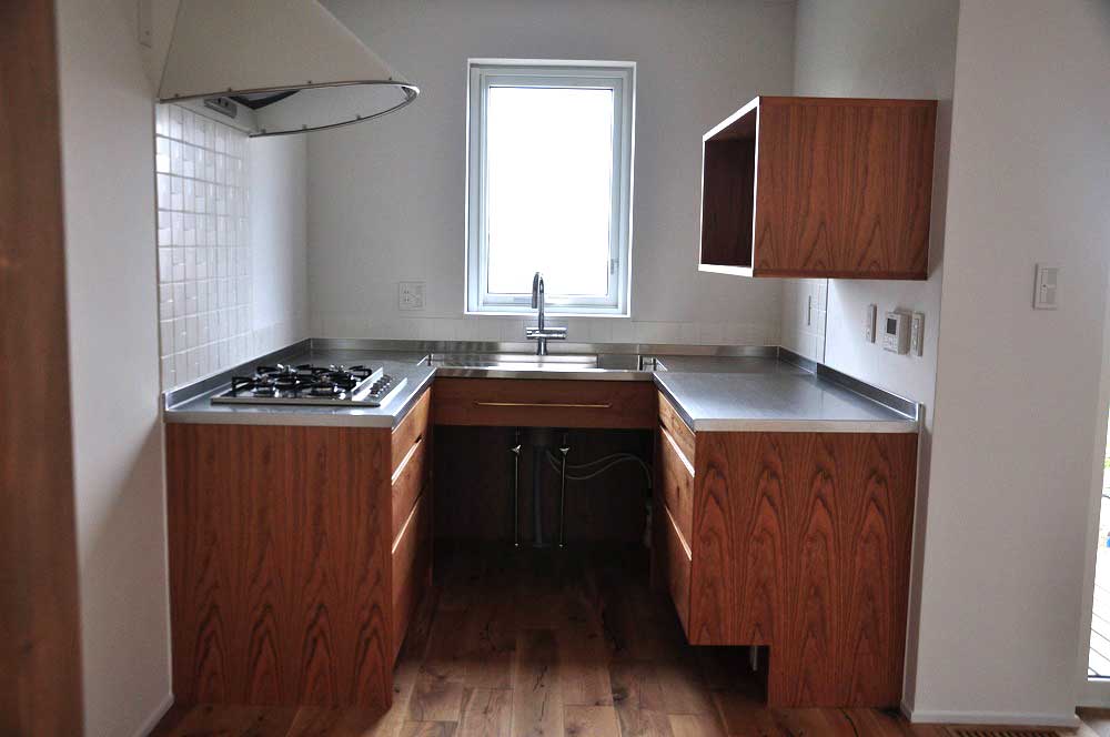 限られたスペースでも採用しやすく、開放感がありながらも効率の良い作業動線を実現できます。カウンターをダイニング側に延ばせば、配膳や朝食カウンターとしても使えて利便性もアップします。