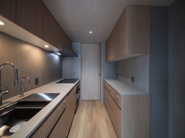 キッチンを2列に分け、それぞれ壁に沿って配置する「二列型の壁付キッチン」は、シンク側とコンロ側を分離することで動線がスムーズになり、調理効率が高まります。作業スペースも広く取れるため、複数人でキッチンに立つご家庭や、調理・配膳の分業が多いご家庭にはとても向いています。